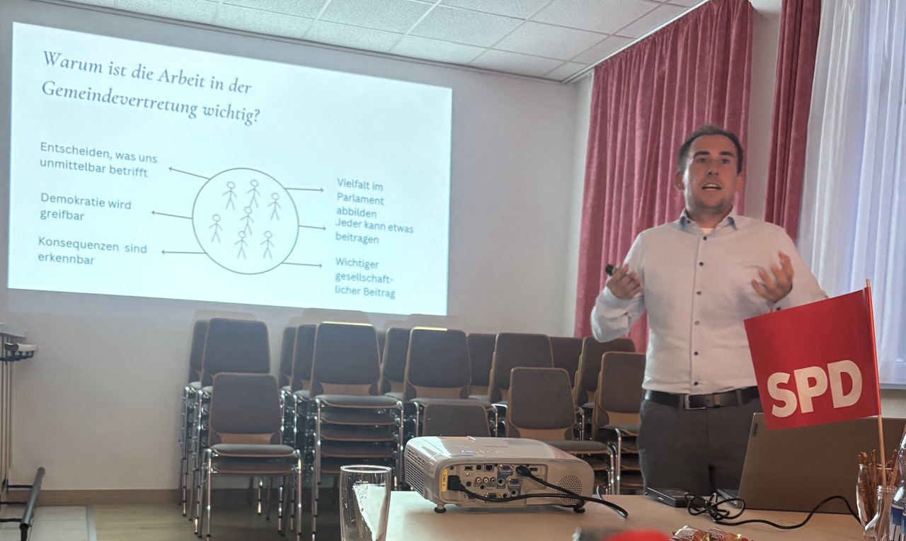 Wahnhausen: Am 17. September lud die SPD Fuldatal zu einer Infoveranstaltung rund um die Aufgaben der Gemeindevertretung und dem Weg dorthin ein. Wir wollten verständlich erklären, wie Kommunalpolitik funktioniert und wie jeder einzelne mitgestalten kann. In angenehmer Atmosphäre führte Jannik Donner vom OV der SPD Niestetal und nebenamtlicher Dozent für Kommunalrecht bei der Verwaltungsakademie Hessen durch eine verständliche Präsentation.