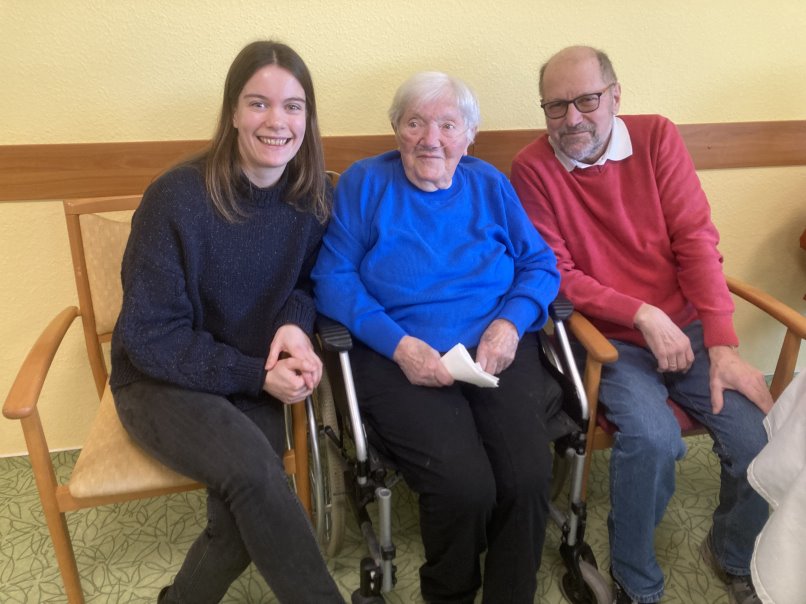 v.l.n.r.: Enkelin Pia, Geburtstagskind Elfriede und Sohn Wolfgang Groß (Foto: © SPD-Fuldatal)